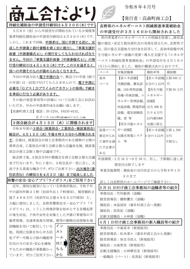 高森町商工会 > お知らせ > 商工会だより 令和8年4月号