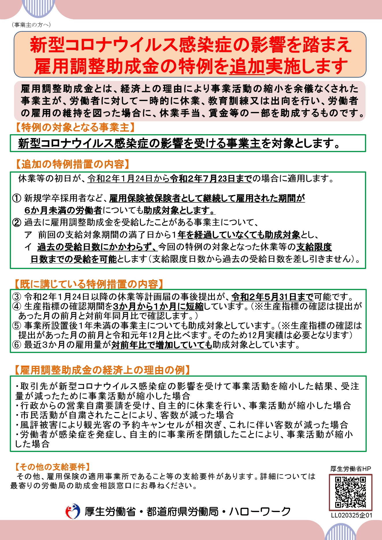 雇用調整助成金の特例追加実施について