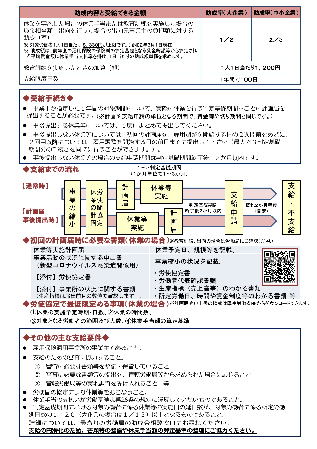 休業手当、賃金等の一部を助成するものです。