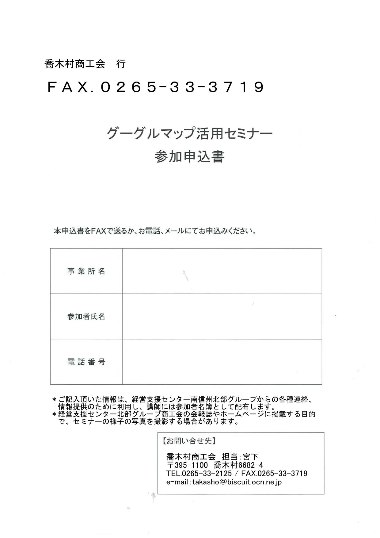 参加申込は画像2枚目の申込用紙をFAX(0265-33-3719)で送っていただくか、